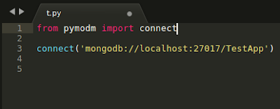 Now, to connect to your local MongoDB instance we use the connect() function of pymodm.