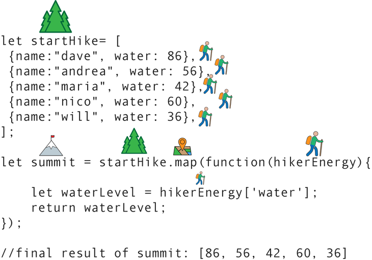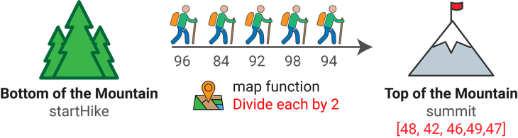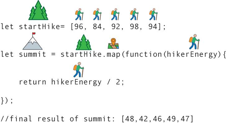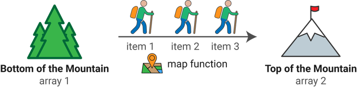 After a little investigation, I realized that you can visualize the functionality of the map method() by comparing it to a hike up a mountain. I’ll explain in a bit.