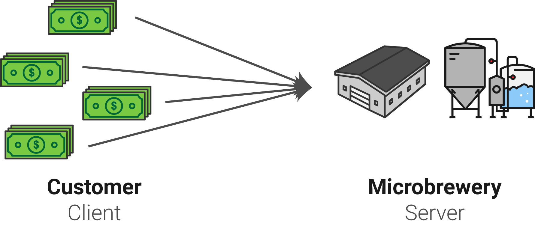 On the other side of the equation, your brewery operations team exists so that it can brew beer that will meet the demands of the customers. In this situation, they are the server. That means that they await requests from clients, and use their computing power to share the appropriate resources based on the request.