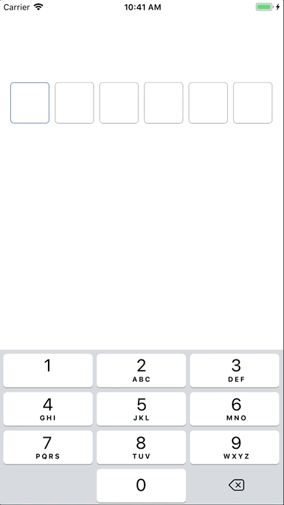 - Update every character from hiddenTextFieldto every indicator box. Rest of boxes will be set to empty.